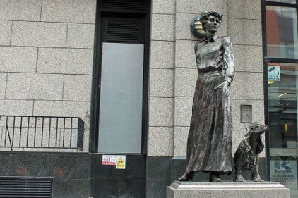 The statue depicts the Countess Markievicz in an informal pose almost as if she was in motion. With her dog, Poppet, at her side, the pose is reminiscent of how she would have lived her life in Lissadell House in County Sligo before coming to Dublin to support the fight for freedom of her homeland.